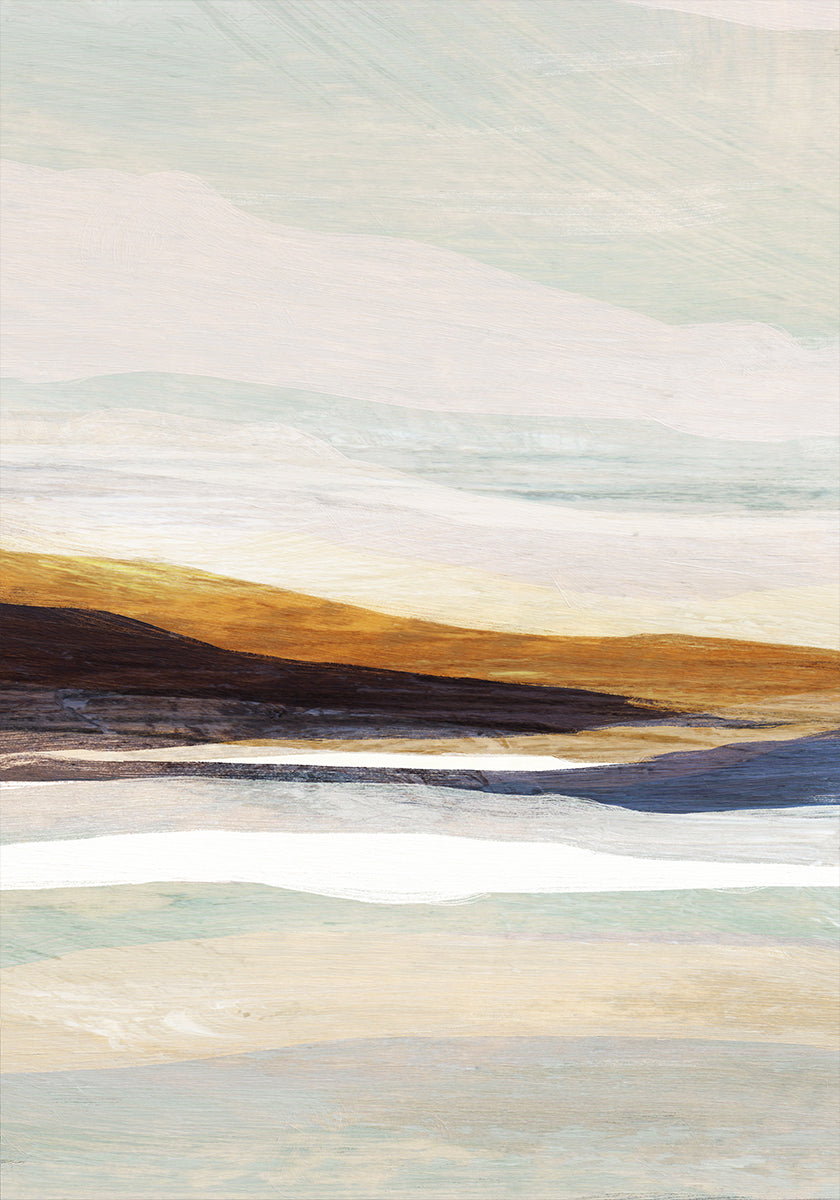 Fallow 1 af Dan Hobday er et roligt, abstrakt landskab i dæmpede beige nuancer. Luftige penselstrøg antyder himmel og vand, mens fine lag skaber dybde mod en fjern horisont. Et minimalistisk, japandi-inspireret motiv, der bringer balance og stille bevægelse til stue, soveværelse eller kontor. Hæng alene eller i harmonisk serie.