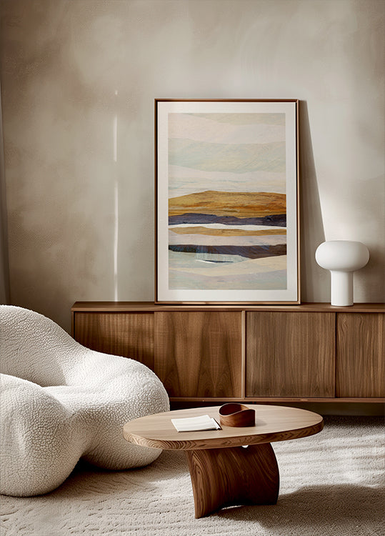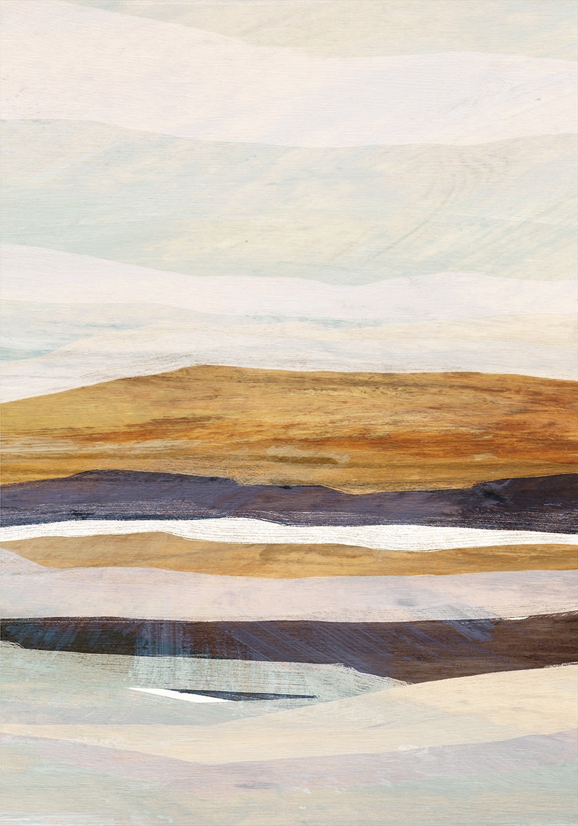 Fallow 3 af Dan Hobday er en rolig, moderne abstraktion af himmel og landskab. Bløde beige nuancer og brede penselstrøg danner en subtil horisont, hvor skyer og vand smelter sammen i bevægelse. Det minimalistiske motiv skaber balance og varme og passer smukt til nordisk og japandi-inspireret indretning.