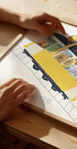 Tag med den ikoniske gule sporvogn i Lissabon – her fyldt med junglevenner! En løve, zebra, giraf, tiger, abe og krokodille kigger nysgerrigt ud, mens byen suser forbi. Carla Daly forener rejsedrøm og humor i en farverig, legende illustration, der spreder smil og feriestemning på væggen. Perfekt til børneværelset og rejsedrømme.