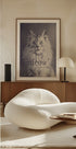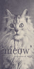 En vittig sort-hvid kunstplakat med et vintage-inspireret portræt af en fluffy kat med det humoristiske citat: "miav, anonym kat 1952." Dette design kombinerer kattens charme med typografisk kunst, ideelt for katteelskere.