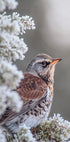 En ensom sjagger hviler på en rimfrossen gren, omgivet af blød bokeh og stille sne. De kølige blåtoner og det lette rim skaber en poetisk vinterstemning, der emmer af ro og nærvær. Fotografen Magnus Renmyr indfanger øjeblikkets skrøbelige skønhed med fin sans for lys og komposition. Perfekt til at bringe vinterro ind i hjemmet.