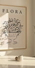 En raffineret minimalistisk stregtegning af en vase fyldt med blomster, præsenteret i en elegant sort-hvid stil. Kunstværket forener enkelhed med raffinement og fungerer som et tidløst blomstertryk til moderne og nutidige interiører.