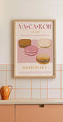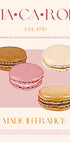 Fransk makronplakat med farverige marengsbaserede kager, der fremhæver deres oprindelse og etablering i 1959. Designet fremhæver traditionelt bagværk, levende farver og fransk konditorkunst.