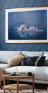Frosty Island af Günter Kleber indfanger en stille vinterø omgivet af iskolde, spejlblanke vande. Sneklædte træer står som silhuetter i blålige toner, mens tågen blødt omslutter horisonten. Et roligt, minimalistisk landskab, hvor kulden og lyset mødes og skaber en næsten meditativ stillhed. Farverne spænder fra dybe blå til bløde grå.