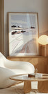 Denne plakat af Nikita Jariwala fanger vinterens stille poesi: et frossent vandspejl, bløde sneduner og fjerne bjergsilhuetter i kølige blå og varme jordtoner. Det minimalistiske landskab balancerer ro og dybde, så blikket glider fra frostnære detaljer mod horisontens stille lys. Perfekt til rum, der søger nordisk ro.