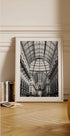 Et storslået sort-hvidt fotografi af Galleria Vittorio Emanuele II i Milano, der viser den imponerende glaskuppel og udsmykkede arkitektur fra det 19. århundrede. Dette print indfanger storheden og elegancen i et af Europas mest ikoniske shoppingarkader og bliver et tidløst statement i interiører inspireret af kultur og design.