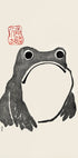 Grumpy Frog I Black af Matsumoto Hoji forener japansk træsnitstradition med nutidig minimalisme: en tvær, udtryksfuld frø tegnet i enkle, kraftfulde linjer mod dyb sort baggrund. Humor og ro smelter sammen i et japandi-udtryk, der tilfører rummet karakter, poesi og zen-lignende balance. Perfekt som blikfang i stue, entré, kontor eller kreative rum.