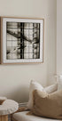 Af Mario Benz: Et stramt, grafisk blik på Berlins regeringskvarter – en monumental facade i stringent gitter af vinduer og beton, gennemskåret af en skarp trappe, der deler billedet diagonalt. Den monokrome, let sepia-tonede palet giver ro, mens en lille menneskefigur sætter skala og antyder byens puls.