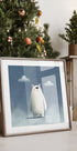 En glad, nuttet isbjørn træder frem i et stille vinterlandskab, omgivet af blød sne og kølige blå toner. Den enkle, skandinaviske streg og den venlige mine giver varme midt i kulden. En charmerende plakat til stue og børneværelse, der bringer ro, humor og hvidt nordlys ind i rummet. Perfekt gave til vinterglade sjæle.