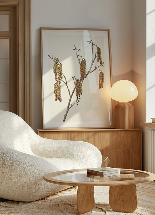 Pust nyt liv i væggene med denne botaniske plakat: Hazel Alder (Alnus regosa), gengivet med fine linjer og blide akvareltoner. Mary Vaux Walcott skabte værket til North American Wildflowers i 1925; en tidløs studie af blad, rakler og frugt, hvor videnskabelig præcision møder poetisk ro. Perfekt som naturinspireret kunst i stue, kontor eller entré.