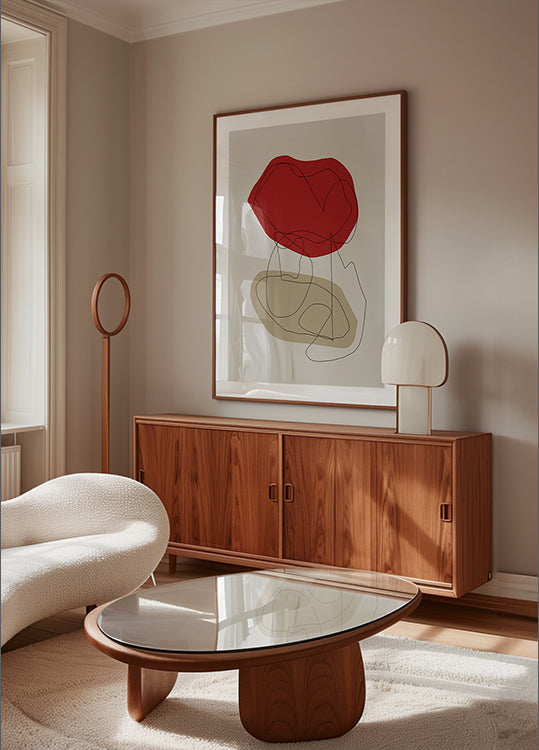 Heart And Mind af Juliana Sampaio Silva er en poetisk, abstrakt komposition, hvor bløde, organiske former møder præcise, grafiske linjer. Motivet balancerer mellem hjerte og sind – intuition og struktur – og skaber en rolig, men energifyldt stemning, der inviterer til fordybelse i hverdagens rum og eftertanke.