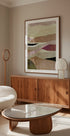 Hills af Dan Hobday er en rolig, moderne abstraktion: bløde, lagdelte former danner bølgende bakker i nuancer af plum, rosa og beige. Enkle konturer og subtile teksturer skaber dybde og balance, der giver rummet et stilrent, poetisk udtryk – perfekt til nordisk, minimalistisk indretning. Skaber ro og raffinement i enhver stue eller entré.