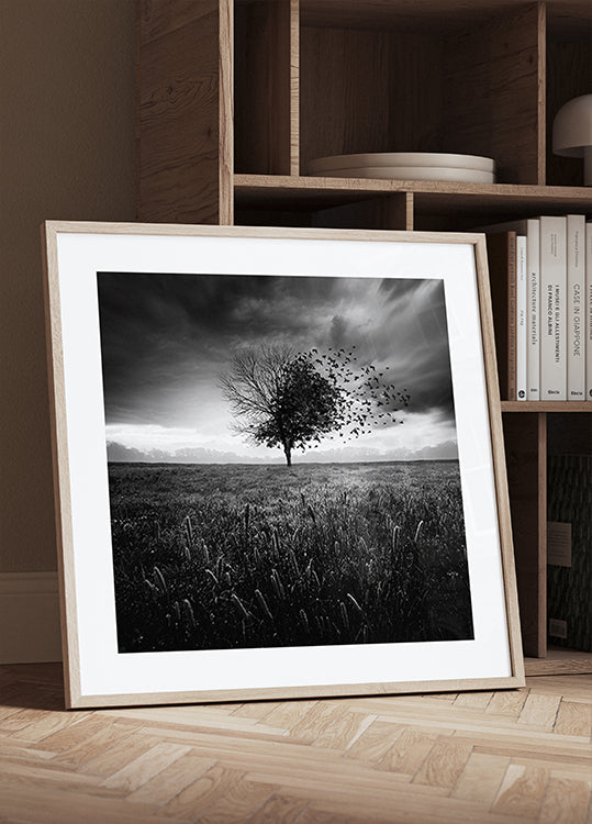 Sebastien DEL GROSSOs Illusion d'un printemps perdu er en stemningsfuld monokrom vision: et ensomt træ rejser sig i et åbent landskab, mens en flok fugle bryder den blege himmel. Et poetisk, drømmende øjeblik mellem ro og længsel, hvor tid og erindring flyder sammen og inviterer til eftertanke. I sort/hvid.