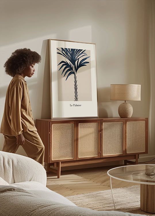 Le Palmier af Merel Takken forener botanisk elegance og grafisk ro: en stiliseret palme og diskret typografi, hvor det franske titelord leder blikket. En tidløs komposition med luft og balance, der emmer af eksotisk lethed og modernitet—perfekt til stue, gang eller kontor. Skaber et roligt fokuspunkt og en diskret tropisk stemning i hjemmet.