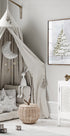 En ensom gran står midt i et stille snelandskab, omgivet af sart faldende fnug og dæmpet vinterlys. Den rene, minimalistiske komposition skaber ro og nærvær og leder tankerne mod højtiden. Et poetisk vintermotiv af Rosana Laiz Blursbyai, der bringer nordisk fred ind i ethvert rum. Perfekt til julehygge, vinterstemning og skandinavisk minimalisme.