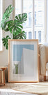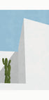 Dette minimalistiske kunstværk indfanger ørkenens ro med høje grønne kaktusser ved siden af moderne hvid arkitektur. De rene linjer, subtile skygger og den klare blå himmel skaber en fredelig komposition, der tilfører en varm, solbeskinnet stemning til dit rum. Perfekt til dem, der sætter pris på enkel, struktureret skønhed og bløde, naturlige farver.