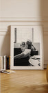 Et elegant sort-hvidt fotografi af en kvinde, der slapper af med håndklæde om håret, mens hun læser Vogue. Kunstværket indfanger et øjeblik af luksuriøs ro og ubesværet sofistikation, perfekt som et statement i interiører inspireret af mode, skønhed og moderne elegance.