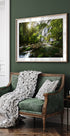 En bjergbæk slynger sig gennem tæt, grøn skov, hvor vandet kaskaderer over mosdækkede sten og fanger solens spredte lys. Woraphon Banchobdi indfanger ro og bevægelse i samme øjeblik: en forfriskende pause for øjet, der bringer naturens kølige sus og tidløse harmoni ind i dit rum. Inspireret af Thailands frodige nationalparker.