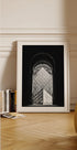 Et fængslende sort-hvidt fotografi af Louvre-pyramiden indrammet af en buet indgang, der forener moderne glasarkitektur med Paris’ historiske storhed. Dette print udtrykker kunst, historie og tidløs elegance og bliver et uundværligt element i interiører inspireret af kultur, rejser og ikoniske vartegn.