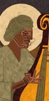 En stiliseret lutspiller træder frem i en moderne, geometrisk komposition, hvor vibrerende farver og teksturer pulserer som musikens rytme. Mønstre væver figur og instrument sammen i et spirituelt, ikonisk udtryk. MUSICIAN GUY IX af Gulcihan Ozguc er et dristigt blikfang til hjem og kreative rum i moderne interiører.