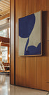 En markant abstrakt plakat med store, flydende marineblå former i kontrast til en tekstureret beige baggrund. Den organiske bevægelse i formene skaber en følelse af flow og elegance, hvilket gør dette stykke til et alsidigt statement til moderne, Japandi- eller minimalistiske interiører.
