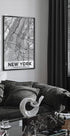 New York White er en stilren, monokrom plakat, hvor hvid typografi og grafiske linjer former byens navn med et kortinspireret udtryk. Det minimalistiske design fanger energien fra NYC med et nostalgisk, retro twist – perfekt som elegant statement i stuen, kontoret eller gangen. Skaber ro og fokus i enhver indretning.