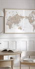 Pacific centered world map in taupe by Rosana Laiz Blursbyai - Premium quality paper with a smooth matte surface and elegant feel. The matte finish reduces glare and gives a refined, timeless look. Strong and durable for long-lasting use, ideal for both professional settings and decorative displays.