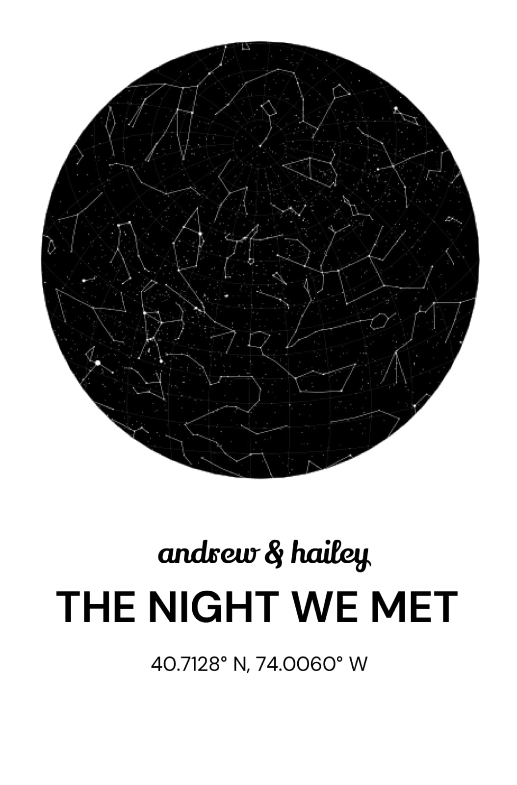 Gør et mindeværdigt øjeblik uforglemmeligt med et personligt stjernekort. Det viser, hvordan stjernerne stod på en særlig dato og sted — ideel som gave til bryllup, jubilæum eller en anden stor begivenhed.