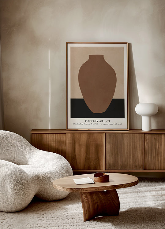 Pottery art 4 af Vitor Costa er en moderne, abstrakt komposition inspireret af keramik. Bløde akvarelstrøg danner en rolig rytme af cirkler, halvbuer og organiske former, der overlapper i balancerede lag. Det minimalistiske udtryk skaber ro, bevægelse og stille harmoni – et kunstnerisk blikfang i hjemmet.