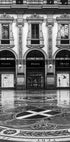 Et raffineret sort-hvidt fotografi af Prada-butikken i Milanos Galleria Vittorio Emanuele II, indrammet af udsmykket arkitektur og det ikoniske mosaikgulv. Dette print forener mode og historie, og udtrykker italiensk elegance og tidløs stil – perfekt til interiører inspireret af kultur, luksus og design.