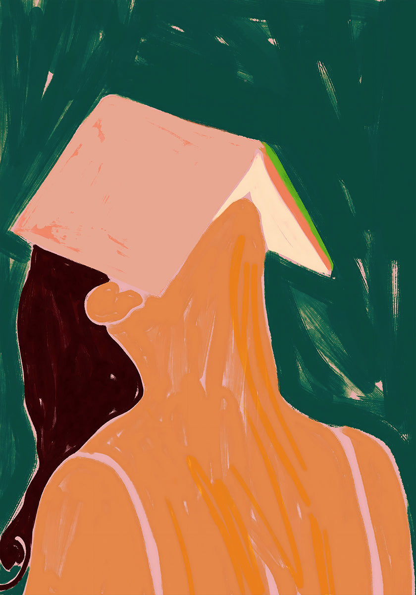 Reading Between the Lines af Uma Gokhale fanger et stille øjeblik af fordybelse: en kvinde i ro, opslugt af sin bog, omgivet af blide pasteller og subtile penselstrøg. Lys og skygge antyder eftertanke, mens kompositionen inviterer til nærhed, ro og den stille magi ved at læse. Et moderne, poetisk portræt af læseglæde og stille selvrefleksion.