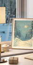En strålende rød fugl lyser op i en stille, snedækket skov. Kontrasten mellem den varme crimson-farve og vinterens hvide ro skaber et poetisk fokuspunkt, der emmer af nordisk minimalisme. En stemningsfuld vinterfortælling med julens antydning—perfekt til at bringe naturens magi ind i hjemmet. Hverdagens rolige pause.