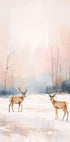 To yndefulde rådyr står stille i en stille vinterlund, omgivet af sneklædte træer og dæmpede pasteller. Den bløde frostluft og spor i sneen skaber en poetisk ro, der inviterer til eftertanke. Ohkimiko fanger nordisk vintermagi med enkelhed og elegance – et stille øjeblik af naturens fred. Perfekt til stue, soveværelse eller entré.