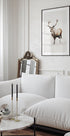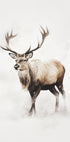 En fredfyldt vinterstemning udfolder sig i "Reindeer In Snow" af Andreas Magnusson: Et majestætisk rensdyr står i let faldende sne, omgivet af bløde, hvide toner og dæmpede skygger. Kontrasten mellem den varme pels og den kølige baggrund skaber ro, nærvær og nordisk poesi. Perfekt til vinterlig hygge og naturinspiration.