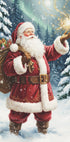 Julemanden bevæger sig gennem en sneklædt skov, hans røde frakke gløder mod de mørke graner, mens stjerner og stille snefald skaber et fortryllet øjeblik. En poetisk hyldest til vinterens magi af Andreas Magnusson med den ikoniske Santa Claus i centrum. En perfekt dosis julestemning. Skabt til hyggelige decemberdage.
