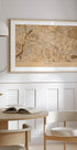 En elegant, sepia-tonet bykortplakat over Berlin, hvor fine linjer og tydelig typografi tegner gader, kvarterer og floden Spree. Den varme, vintage patina skaber et nostalgisk udtryk, der inviterer til at udforske byens historiske lag – fra Mitte til Kreuzberg – og giver væggen karakter med tidløs storbystemning.