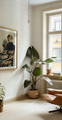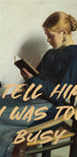 Dette kunstværk kombinerer klassisk realisme med moderne tekst og viser en kvinde, der læser, med sætningen "TELL HIM I WAS TOO BUSY" i fede bogstaver. Værket udforsker temaer som introspektion og uafhængighed og balancerer tidløs elegance med et modigt, moderne udtryk.