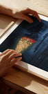 En stille vinternat i dybe blå toner: En sneklædt skov, en spejlblank skovsø og et strålende juletræ, hvis lys spejler sig i vandet. Ved bredden står en pige i eftertænksom ro. The Hope of Christmas af Terry F indfanger magien, håbet og den hyggelige ro, der følger julens stjerneskær. Perfekt til at bringe varme og drømmeri ind i vintermørket.