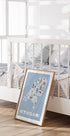 En legende, farverig Holland-plakat af kunstneren Carla Daly: et illustreret kort med Amsterdam, Rotterdam og Eindhoven, kanaler og vindmøller, tulipaner og cykler. Dyr som køer, får og fugle bringer landet til live, mens ikoniske steder som Evoluon pryder motivet. Perfekt til børneværelset eller rejsedrømme.