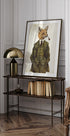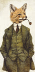 Et charmerende, antropomorfisk portræt af en ræv i skræddersyet jakkesæt, med pibe og distingveret mine og aristokratisk væsen – et nik til vintage-portrættets klassiske elegance. Mike Koubous værk forener humor og nostalgi i et stilrent, grønt-tonet univers, der løfter både stue og arbejdsvæg – med personlighed.