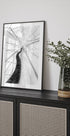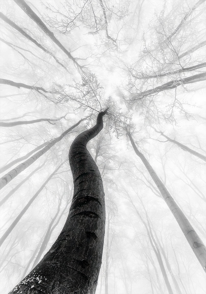 Et stille vinterøjeblik fanget af fotografen Tom Pavlasek: slanke bøgetræer står i sneen, indhyllet i tåge og frost. De bløde grå og hvide toner skaber dybde og ro, mens de gentagne stammer tegner grafiske linjer i landskabet. En minimalistisk, nordisk stemning til hjemmet. Perfekt til rum, der søger klarhed, stilhed og natur.