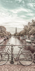 En stemningsfuld hyldest til Amsterdam: langs en rolig kanal står cykler parkeret ved brosten og smalle gavlhuse, mens Westertårnet rejser sig ikonisk i baggrunden. I en urban vintage-stil med bløde kontraster og diskret turkis fremhævelse fanger Melanie Viola byens tidløse charme. Stemningen fra Prinsengracht mærkes i hver detalje.