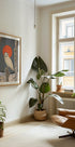 Vintage Owl af Nicholas fanger nattens poesi: en vagtsom ugle med lysende øjne hviler mellem slanke birketræer, mens snefnug daler i måneskær. Geometriske former og enkel linjetegning giver motivet et retro, minimalistisk udtryk, der emmer af nordisk ro og vintermagi. Den stiliserede nattehimmel giver dybde, og en vintagefarvet palet skaber ro.