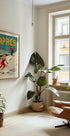 En nostalgisk pinup-scene fra après-ski: et smilende par i vintagestil skåler i whiskey, omgivet af sneklædte bjerge og retro chalet-stemning. Varme ravfarver møder krystalklar vinterluft, og detaljer som skistave, handsker og strik sætter tonen. Perfekt til barvæggen, hytten eller vinterdrømme året rundt.