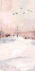 En rolig vinterscene af Ohkimiko folder sig ud: en flok fugle svæver over et stille, sneklædt landskab i blide pasteller. Den afdæmpede palet og det minimalistiske udtryk skaber en følelse af stilhed og rum. Perfekt til at bringe nordisk ro, lethed og eftertænksomhed ind i hjemmets indretning. Et poetisk motiv, der inviterer til rolig fordybelse.