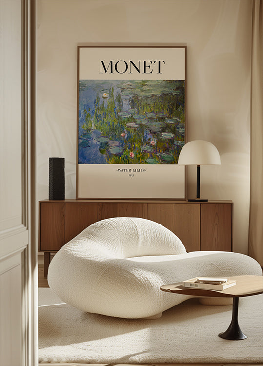 En tidløs reproduktion af Claude Monets Åkander (1915), et af de mest berømte værker i hans ikoniske serie. Dette impressionistiske mesterværk fanger de glitrende refleksioner og de delikate blomster fra Monets havedam i Giverny og blander bløde blå, grønne og lyserøde nuancer til en rolig, drømmende vision. Perfekt til at tilføje elegance og ro til ethvert rum.