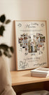 En romantisk og minimalistisk bryllupscollage, der samler jeres smukkeste øjeblikke i et rent, gallerilignende layout. Den bløde neutrale baggrund, elegante typografi og håndtegnede bryllupsikoner giver et tidløst udtryk. Personlig med navne, dato og en kort tekst – ideel som bryllupsgave, årsdagsoverraskelse eller et kærligt minde til hjemmet.