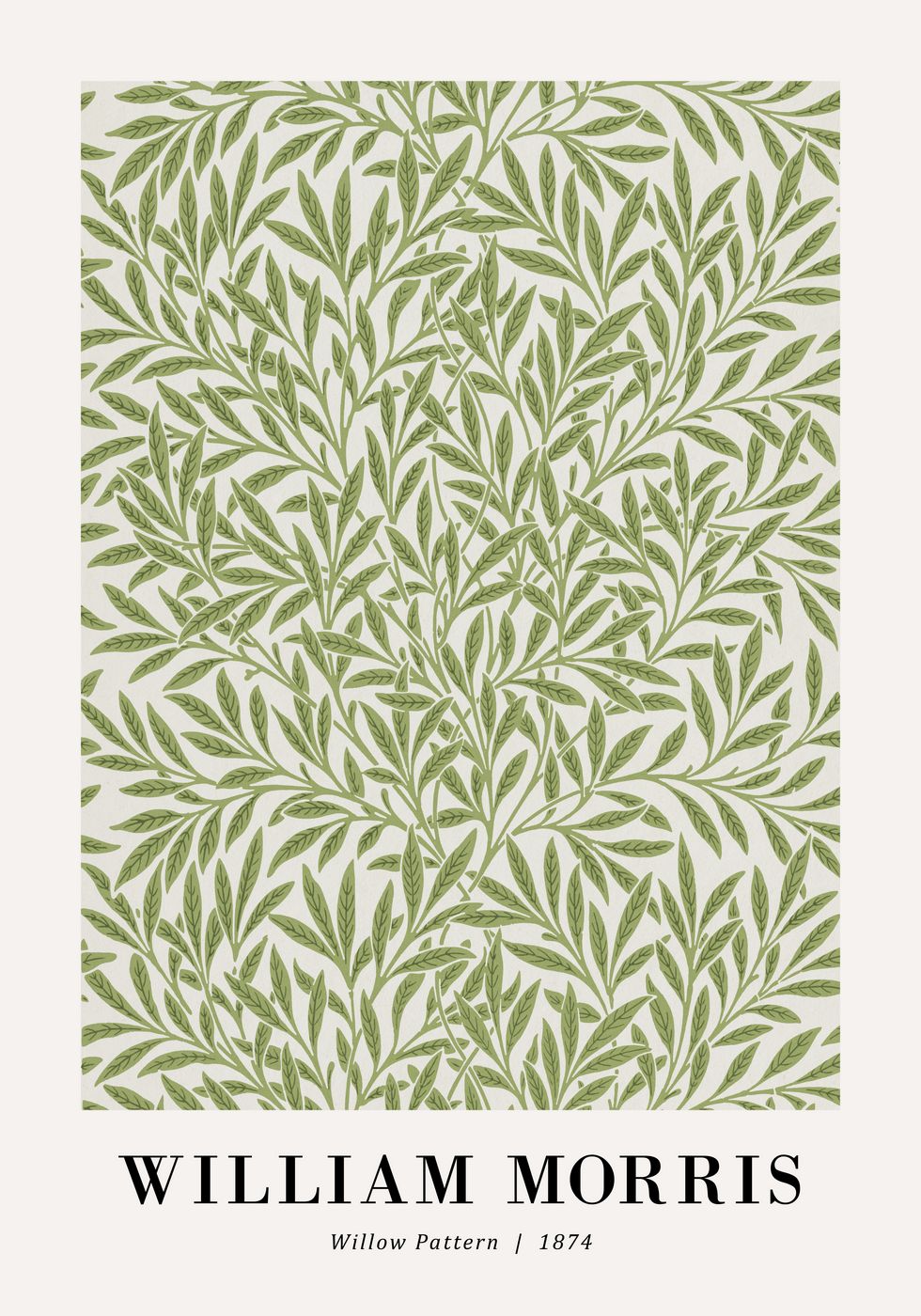 En tidløs botanisk plakat med det ikoniske *Willow Pattern*, designet af William Morris i 1874. De fine grønne blade skaber et fascinerende, naturinspireret mønster, der perfekt indfanger *Arts and Crafts-bevægelsens* stil. Ideel til dem, der elsker vintage design, klassisk håndværk og naturlige mønstre.