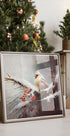 En rød kardinal hviler på sneklædte grene blandt vinterens røde bær i et roligt, poetisk øjeblik. Emel Tunaboylu fanger den stille magi i et klassisk, tidløst motiv, hvor bløde toner og fine detaljer giver følelsen af frisk sne, vinterlys og julestemning – perfekt til at skabe varme i kolde måneder.