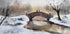 Vinterens stille bro af Giorgio Gosti skildrer en snedækket passage i Central Park, hvor træernes grene bøjer sig over et spejlblankt vand. Bløde akvarelvask skaber tåget lys, dæmpede grå og blå toner og en rolig rytme, der inviterer til eftertanke og stille vintervandringer. En stille hyldest til impressionistisk ro.